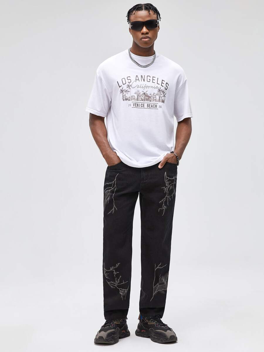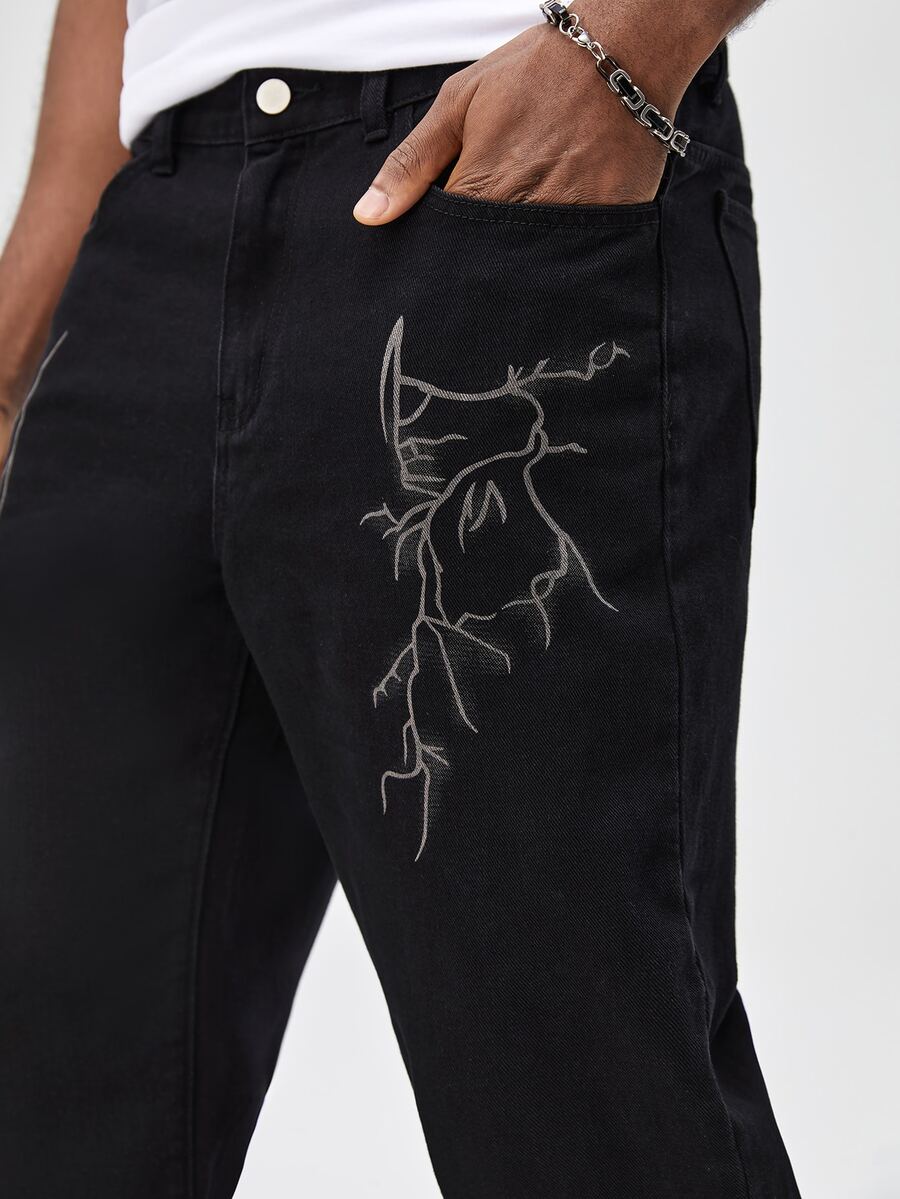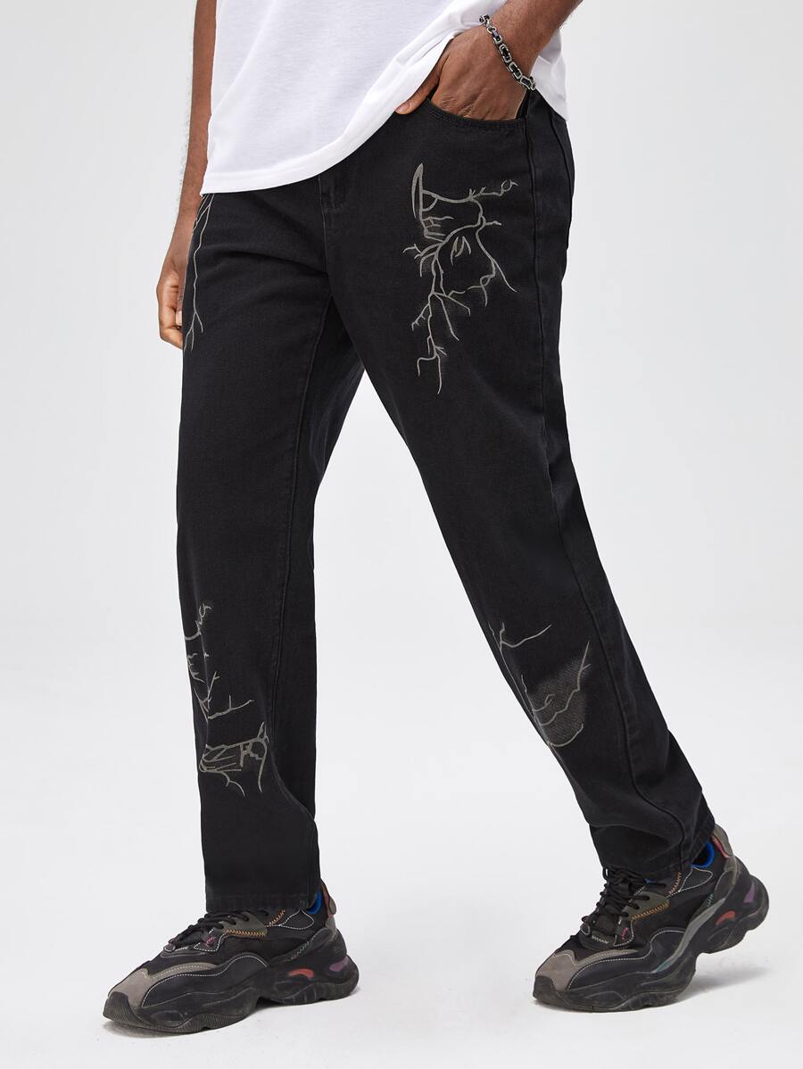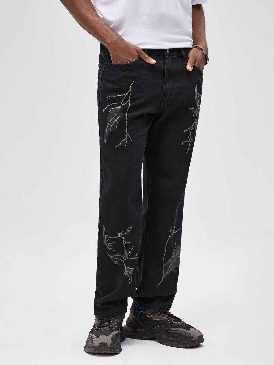 Guys Lightning Print Straight Leg Jeans