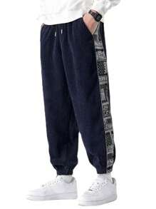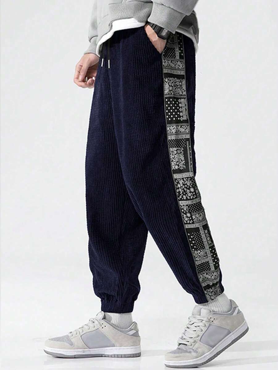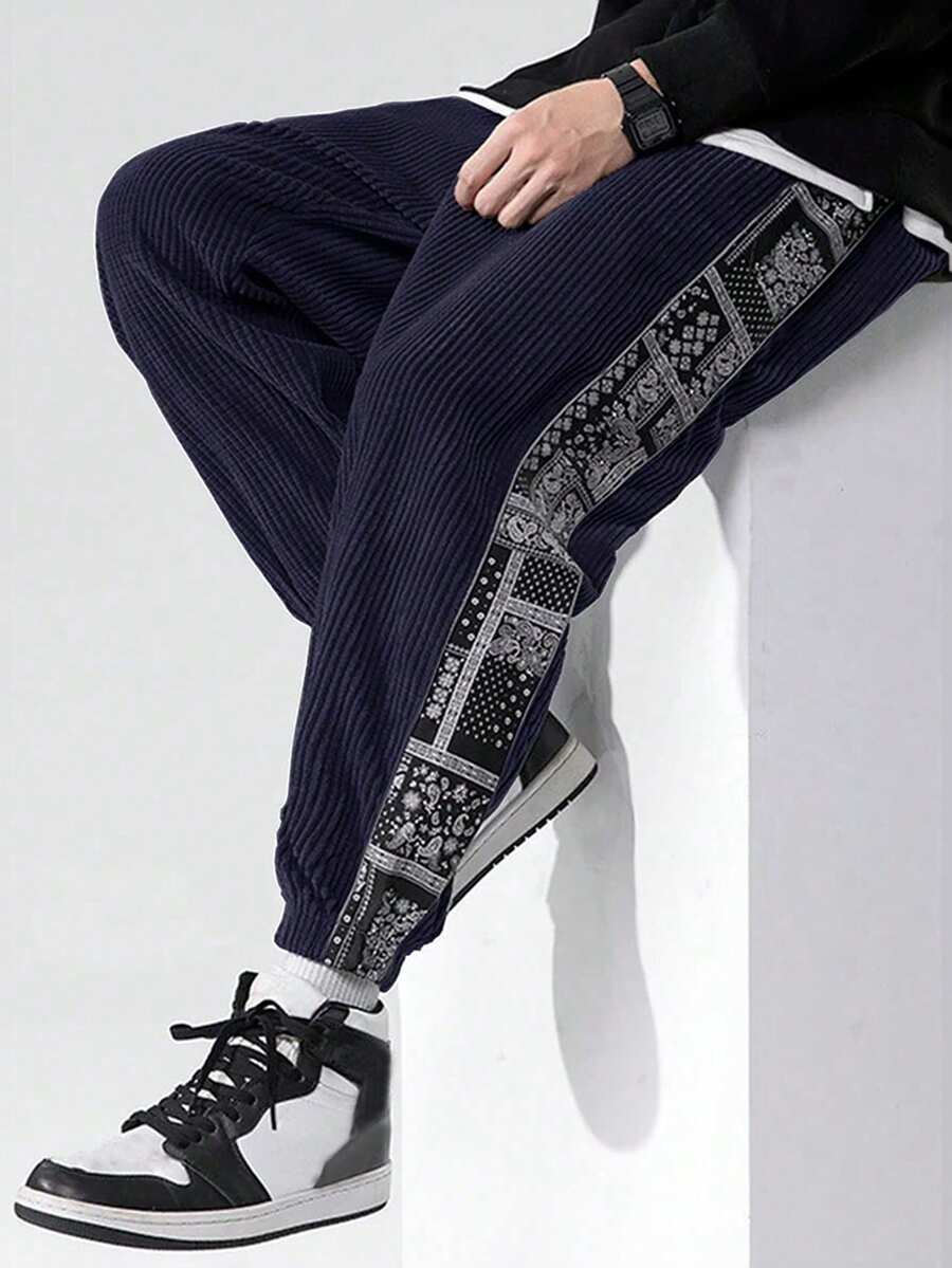 Guys Paisley Scarf Print Corduroy Pants