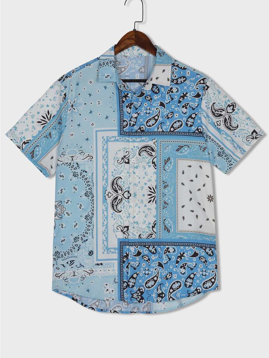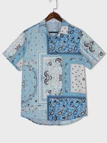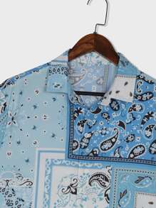 Guys Paisley & Scarf Print Curved Hem Shirt