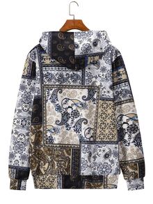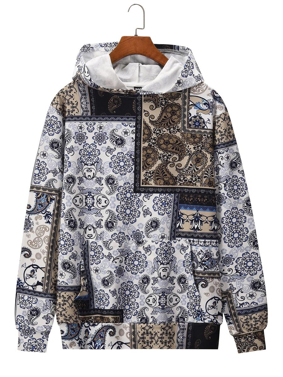 Guys Patchwork Paisley Print Hooded Sweatshirt