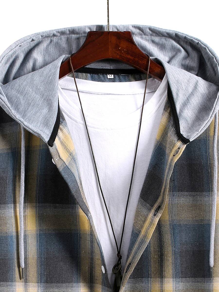 Manfinity EZcore Guys Plaid Print Button Up Drawstring Hooded Shirt Without Tee