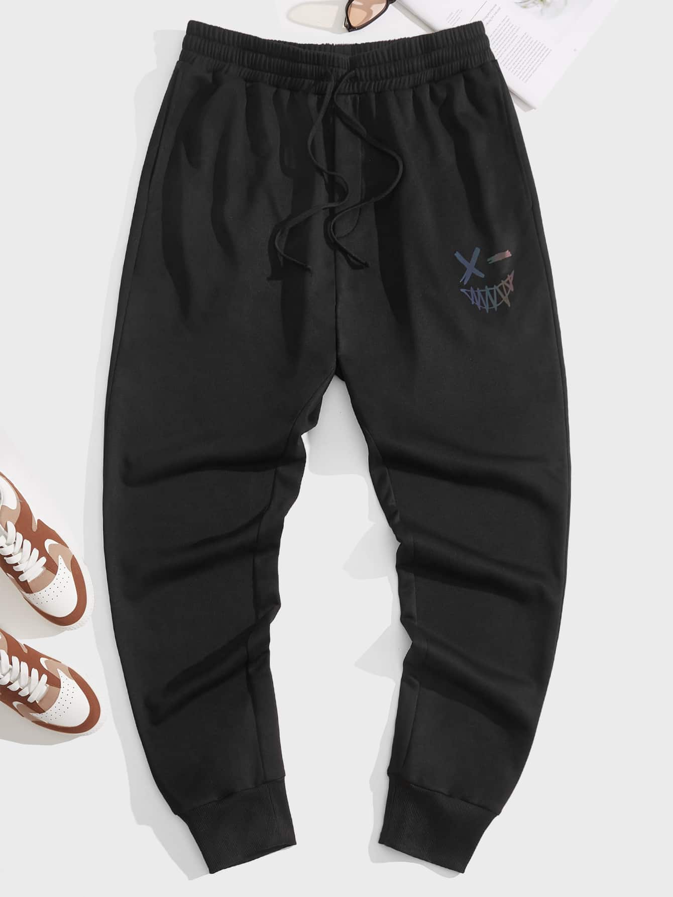 Guys Reflective Cartoon Graphic Drawstring Waist Sweatpants
