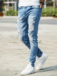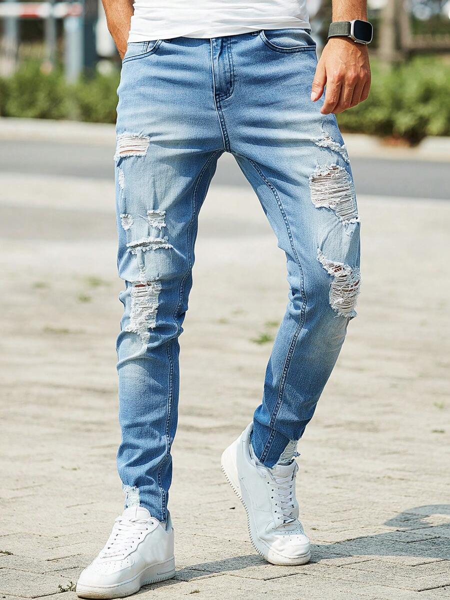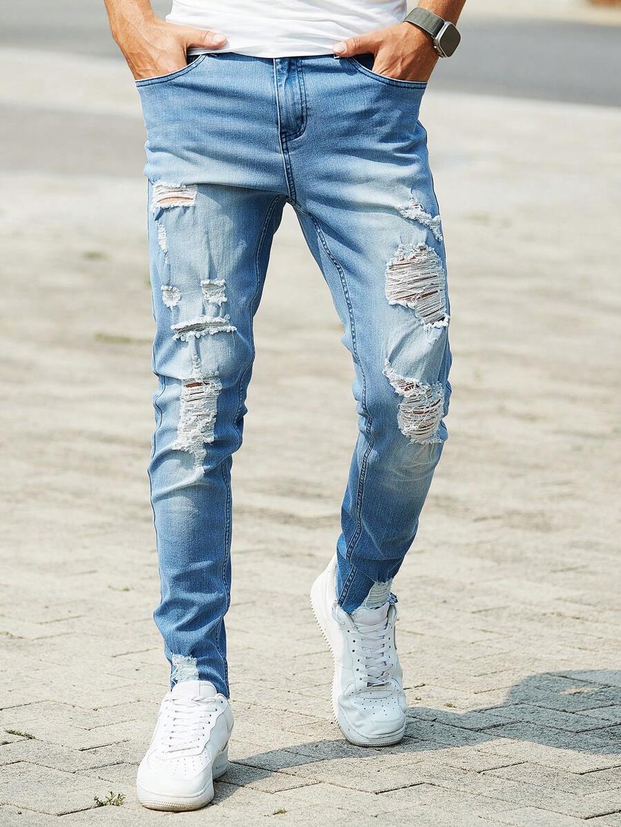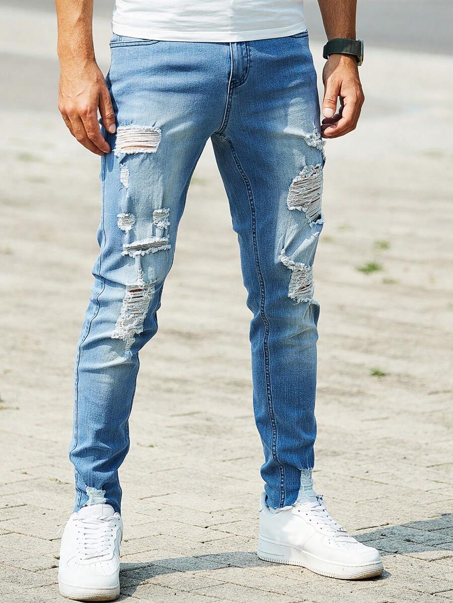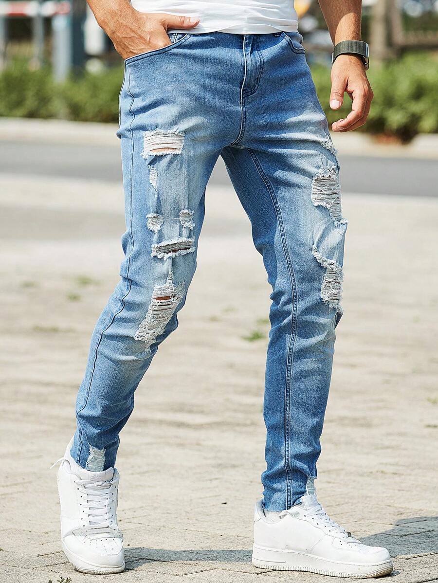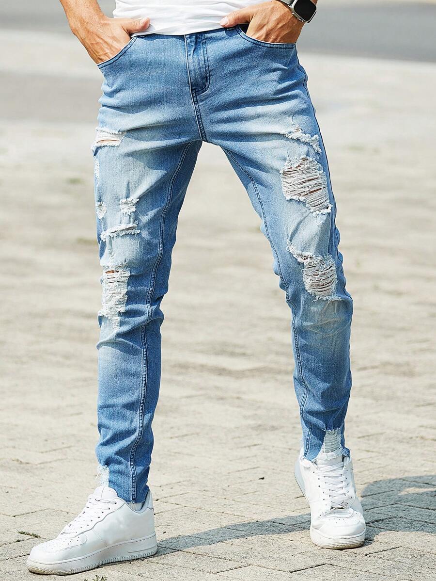 Guys Ripped Frayed Skinny Jeans