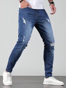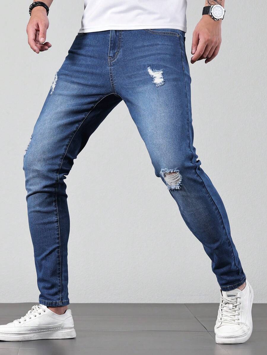 Guys Ripped Frayed Skinny Jeans