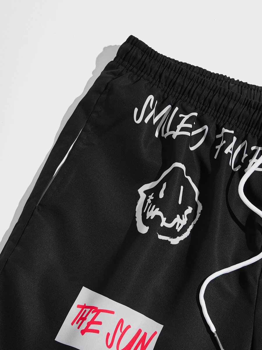 Guys Skeleton & Slogan Graphic Drawstring Waist Shorts