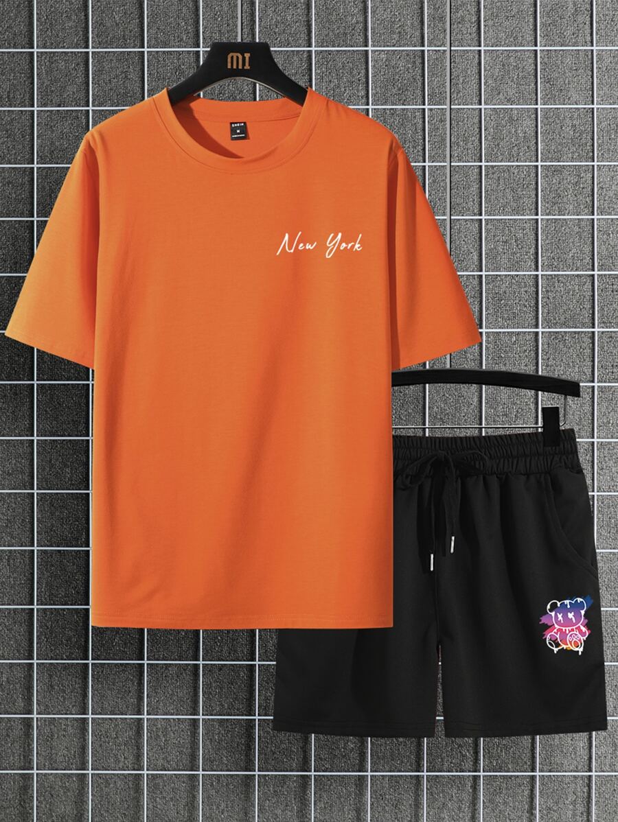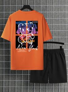 Guys Slogan & Cartoon Graphic Tee & Shorts