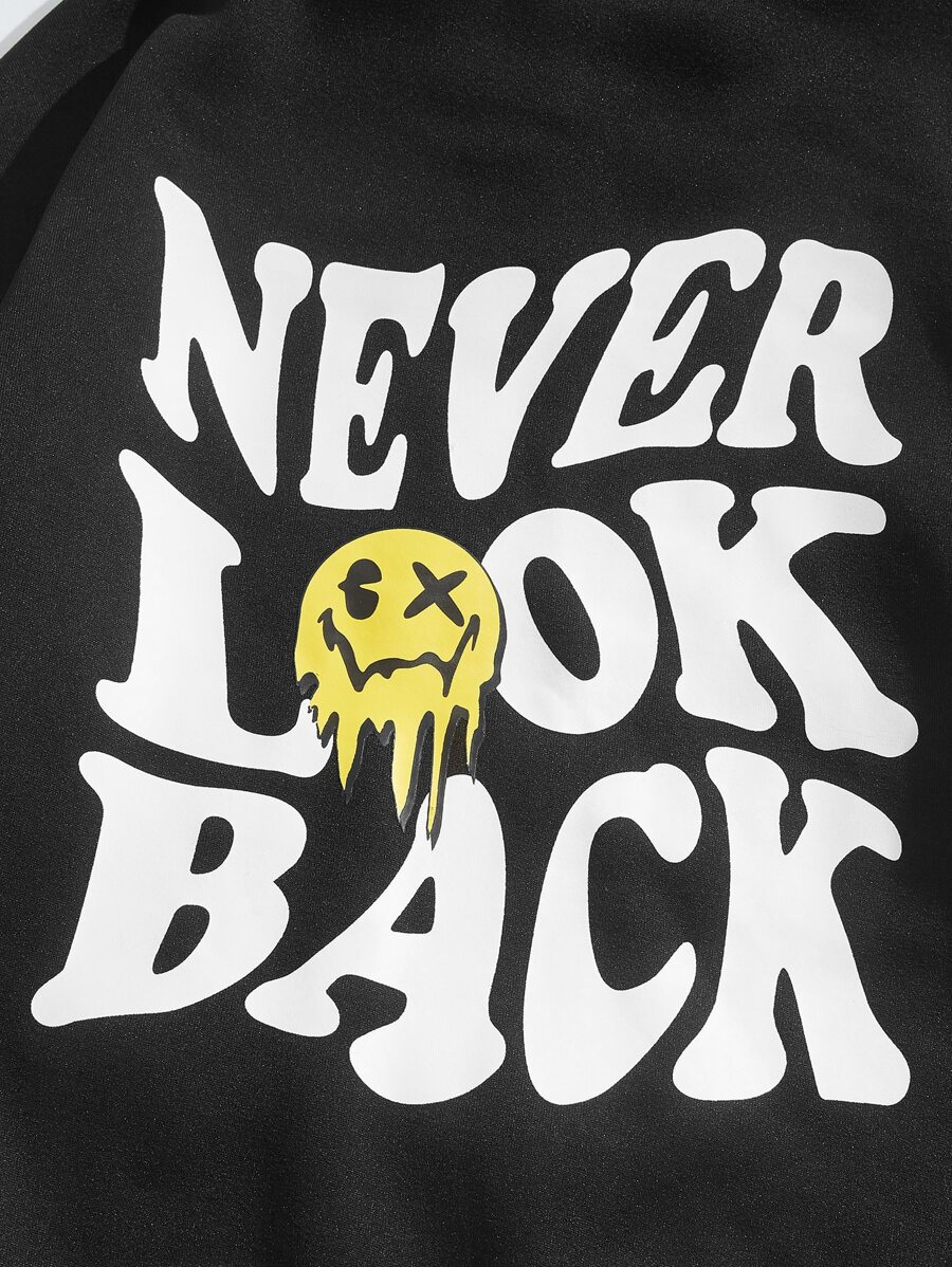 Guys Slogan & Expression Print Drawstring Thermal Hoodie