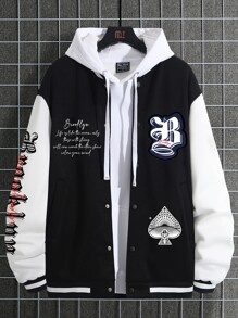 Guys Slogan Graphic Colorblock Bomber Jacket Without Hoodie