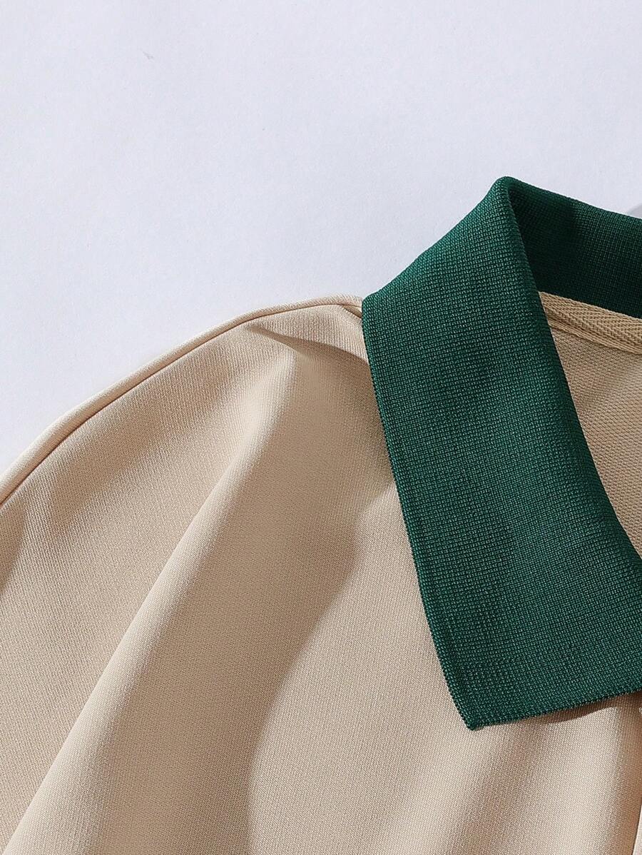 Guys Slogan Graphic Contrast Collar Drop Shoulder Polo Shirt