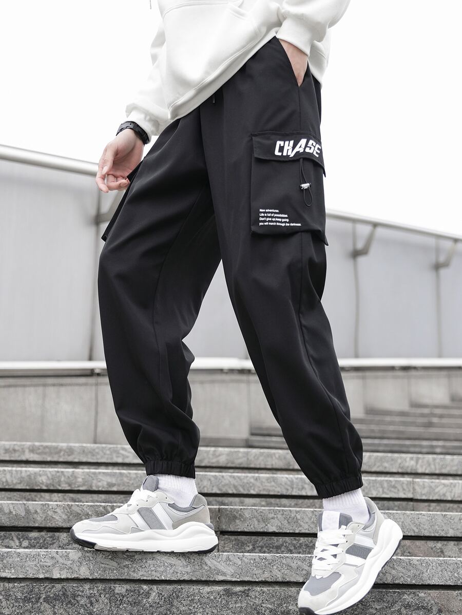 Guys Slogan Graphic Flap Pocket Cargo Pants