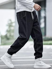 Guys Stitch Detail Drawstring Waist Jogger Jeans