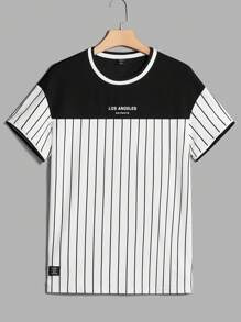 Guys Striped & Letter Graphic Drop Shoulder Tee