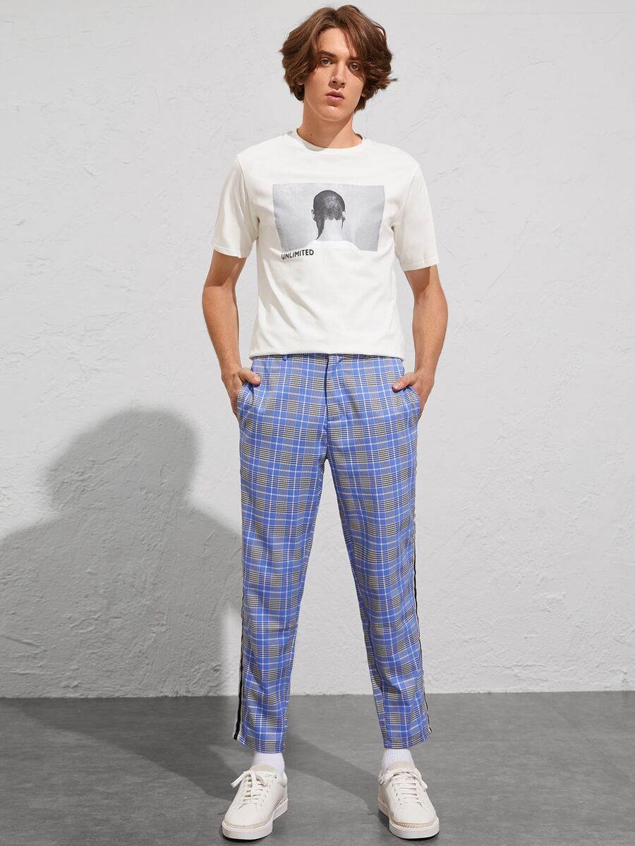 Guys Striped Side Glen Plaid Pants
