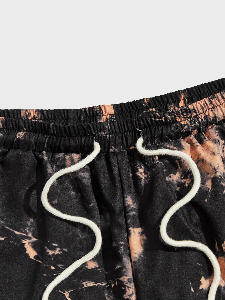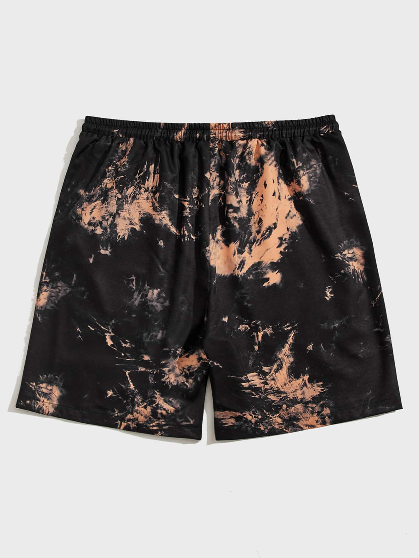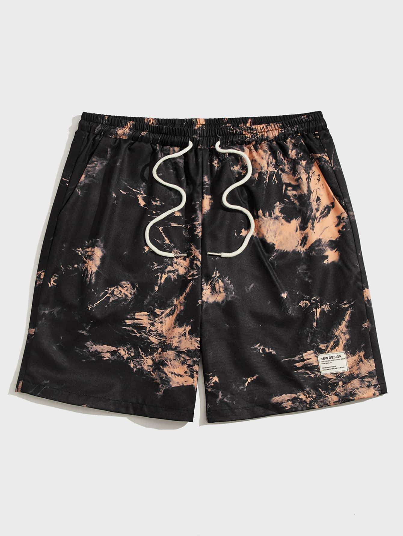 Guys Tie Dye Letter Patched Drawstring Shorts