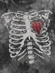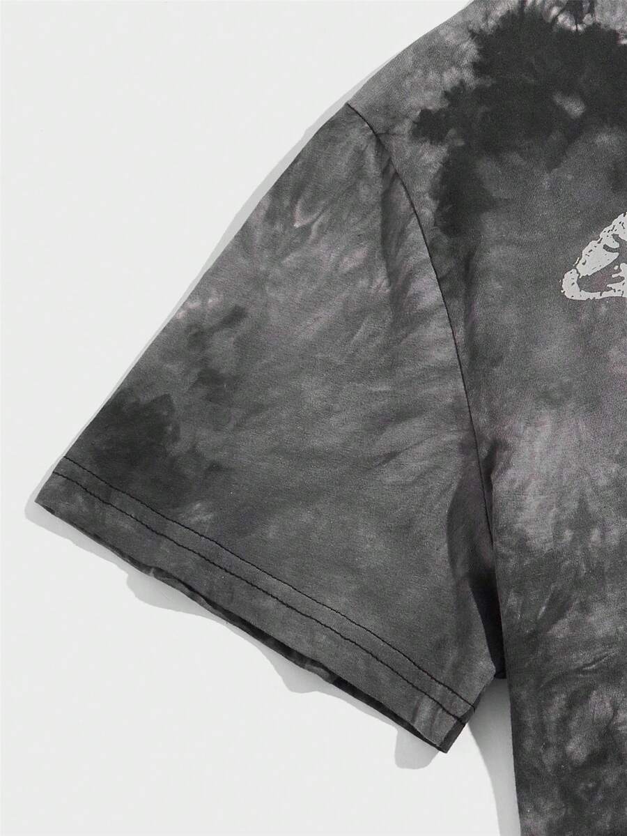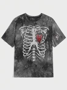 Guys Tie Dye Skeleton Print Tee