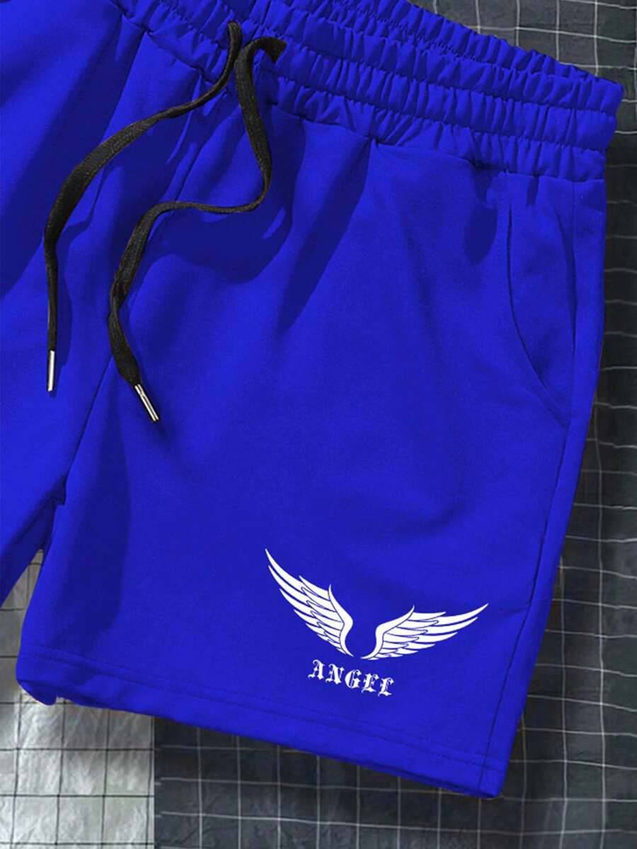 Guys Wings & Letter Graphic Drawstring Waist Shorts