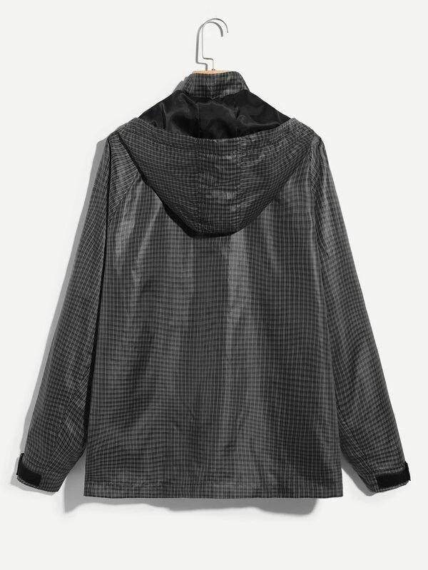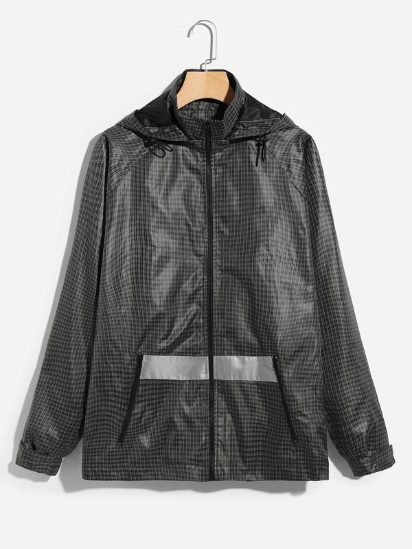 Guys Zip Front Hoodie Plaid Coat