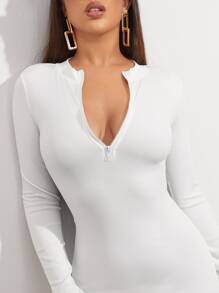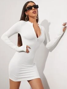 Half Zip Thumb Hole Bodycon Dress