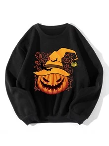 Halloween Pumpkin Graphic Drop Shoulder Sweatshirt