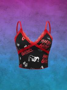 Harley Quinn | ROMWE Collaboration Sexy And Cute Sleeveless Top For Women, Simple And Versatile, Allover Print Full Cotton And Elasticity, School