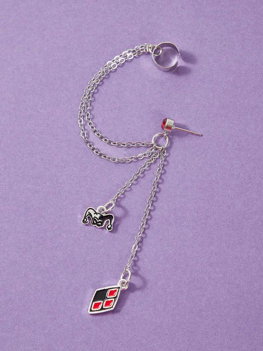 Harley Quinn | ROMWE Geometric Joker Pattern Long Chain Rhinestone Earrings