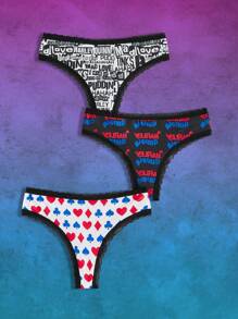 Harley Quinn | ROMWE Lace Splicing Full-Printed Women Triangle Panties 3-Pack