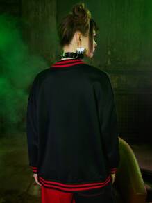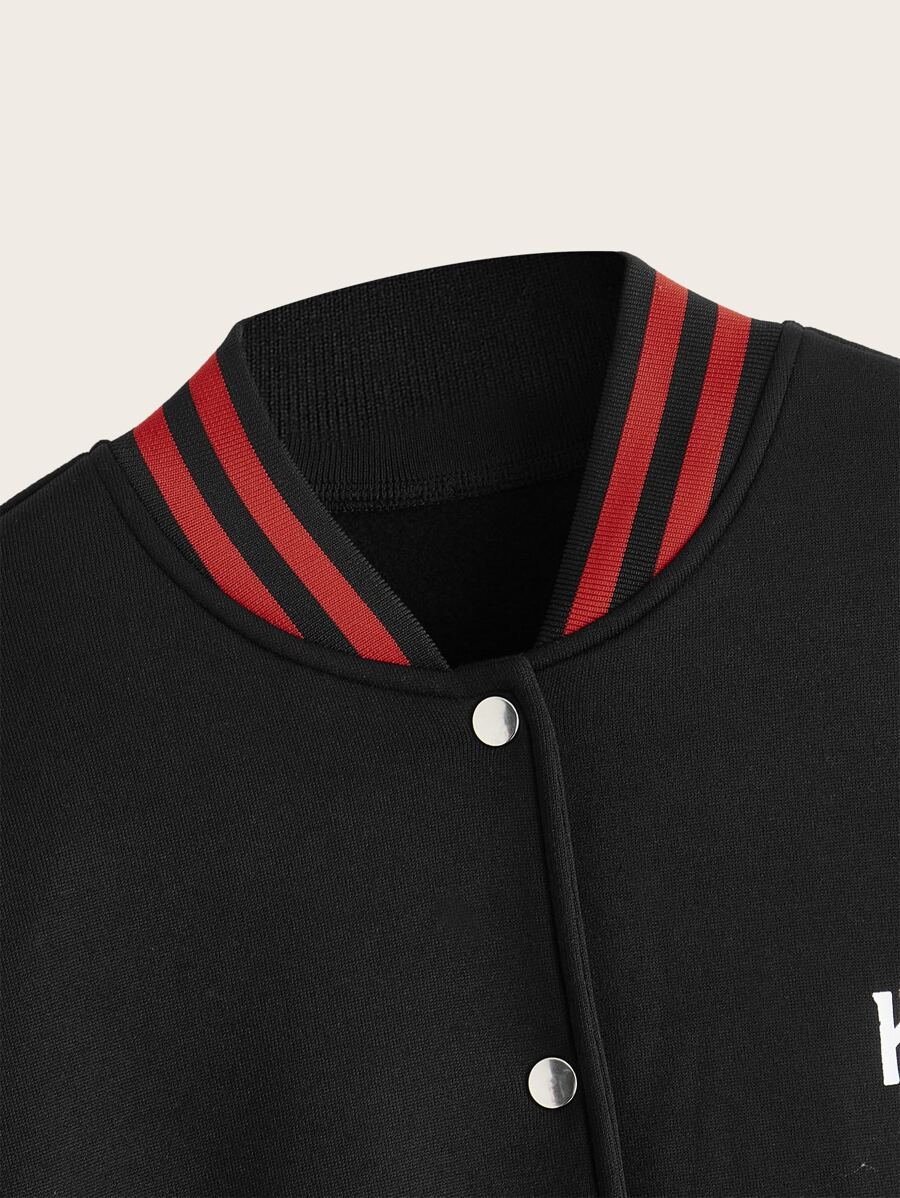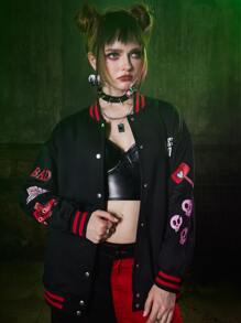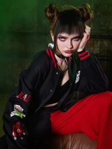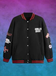 Harley Quinn | ROMWE Letter Cartoon Graphic Button Front Varsity Jacket