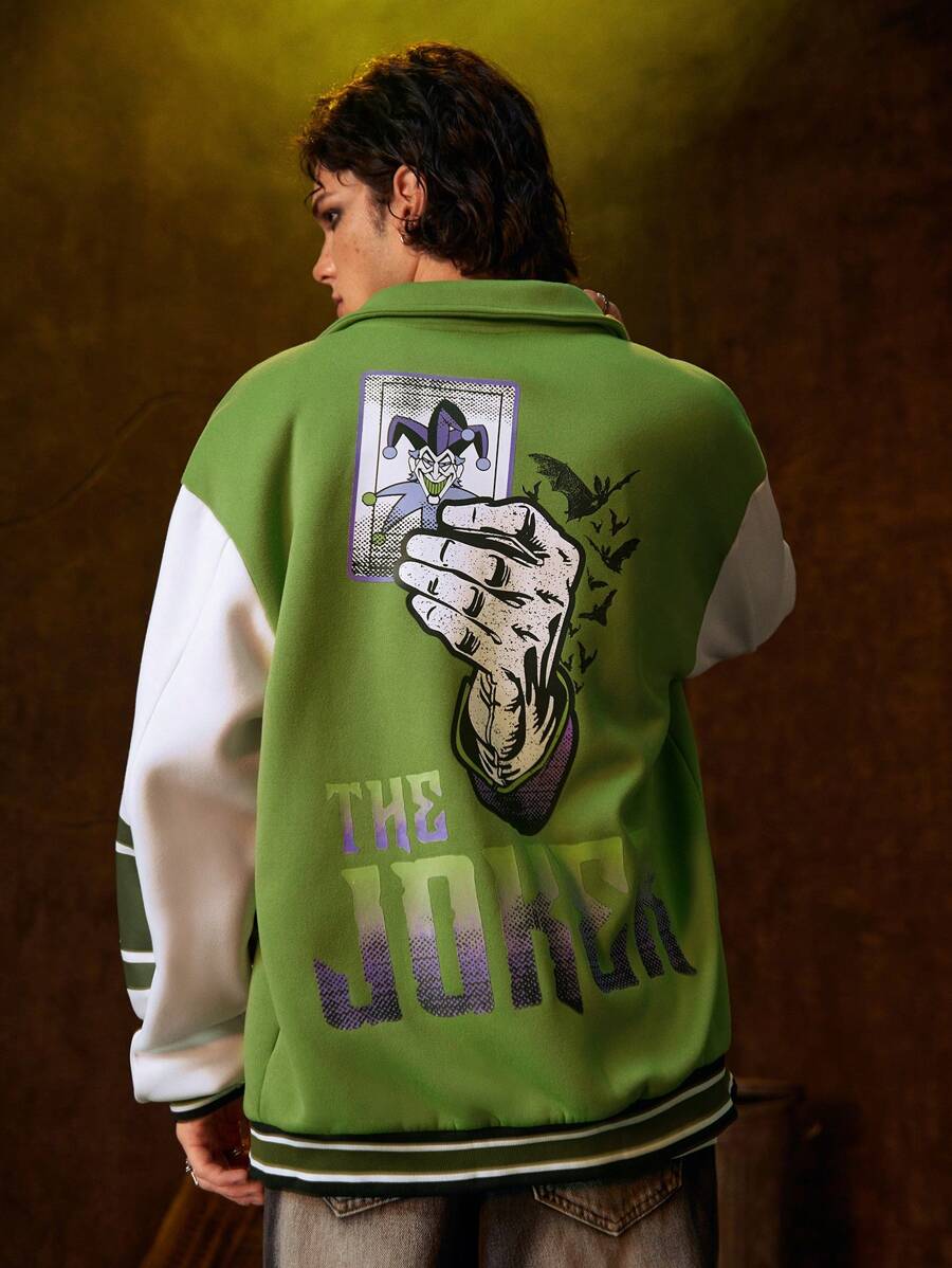 Harley Quinn | ROMWE Men Contrast Color Print Lapel Button-Up Long Sleeve Jacket