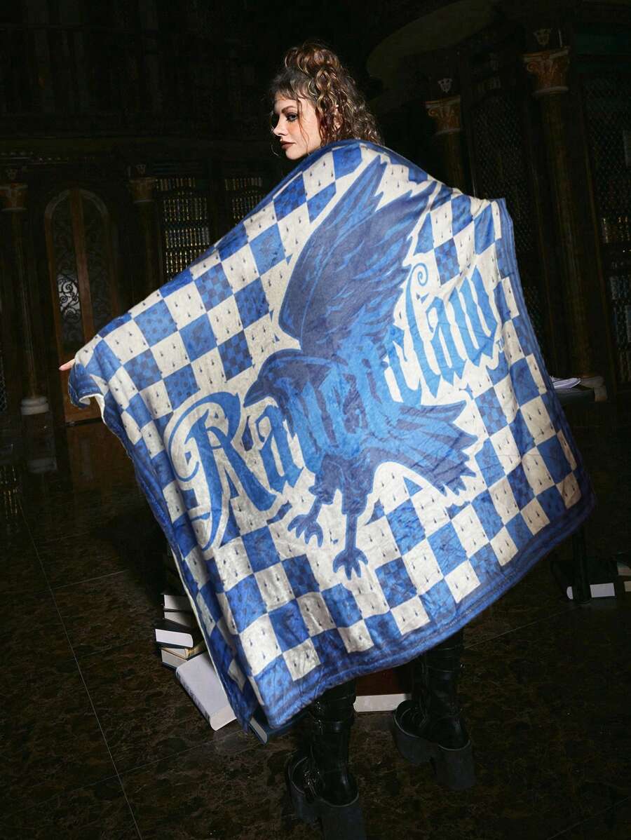 Harry Potter | ROMWE 1pc Eagle & Letter Graphic Checkerboard Pattern Throw Blanket,Casual Washable Decorative Throw Blanket
