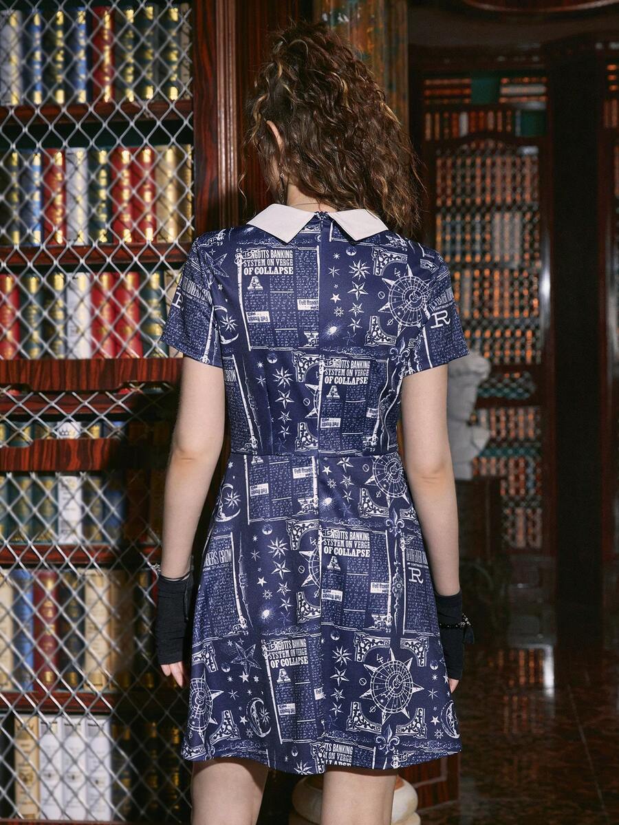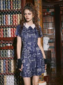 Harry Potter | ROMWE Allover Print Contrast Collar Dress