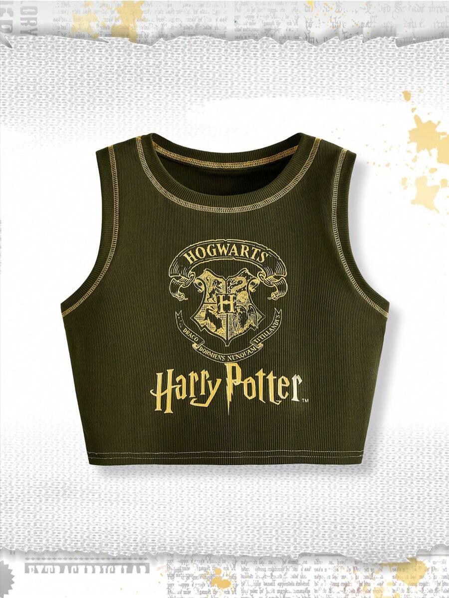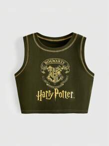 Harry Potter | ROMWE Letter Print Round Neck Top Stitch Tank Top