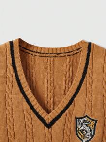 Harry Potter | ROMWE Plus Size Embroidery Detail Sweater Vest