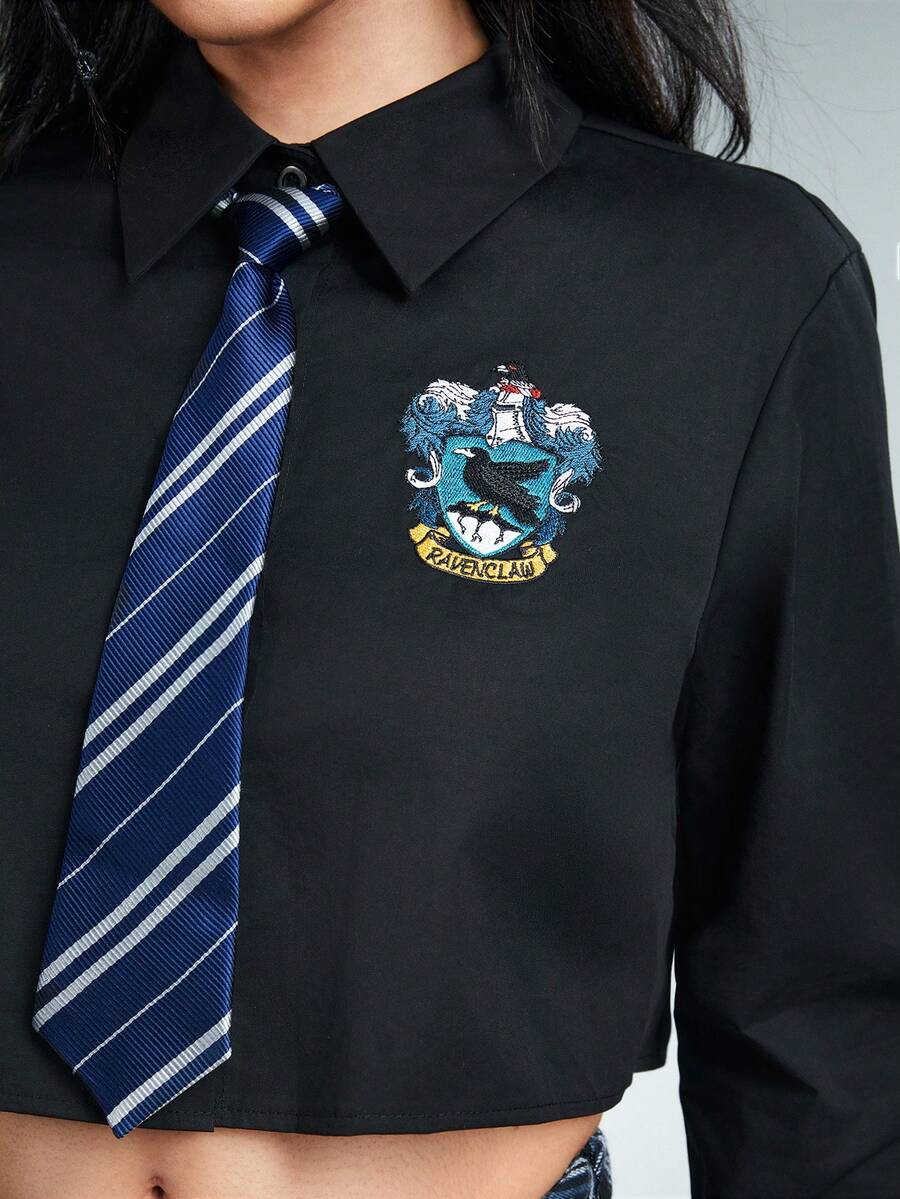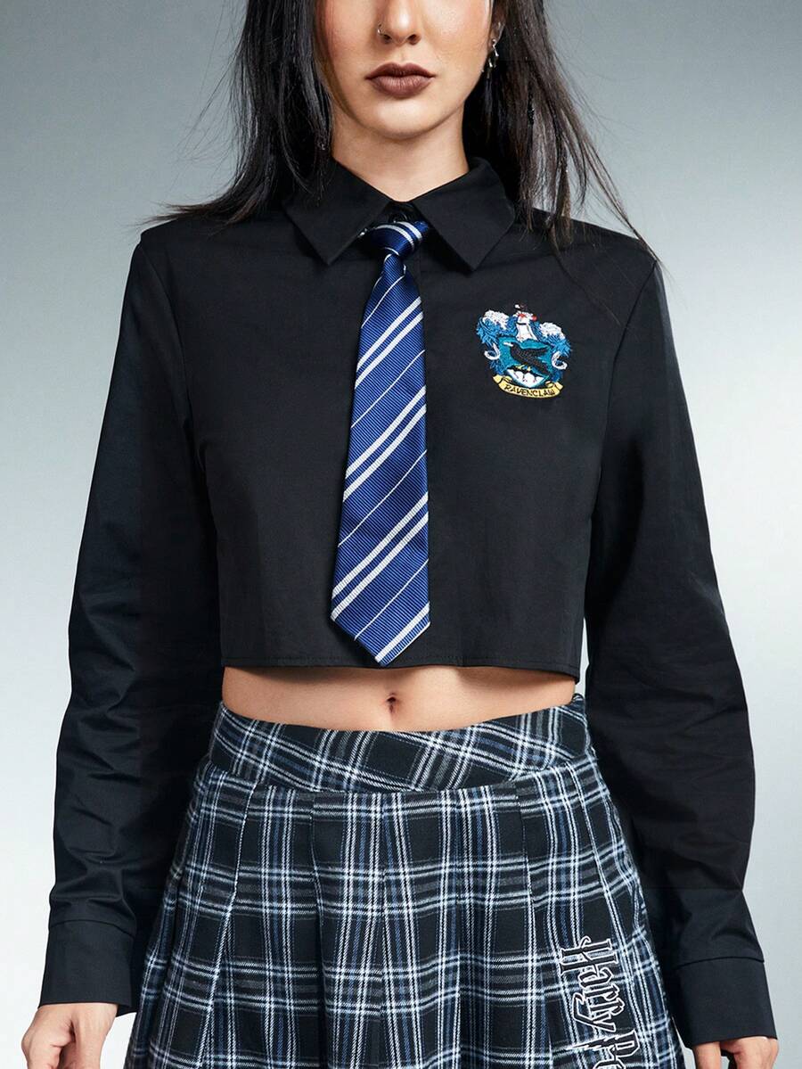 Harry Potter | ROMWE Ravenclaw College Crop Shirt With Striped Tie