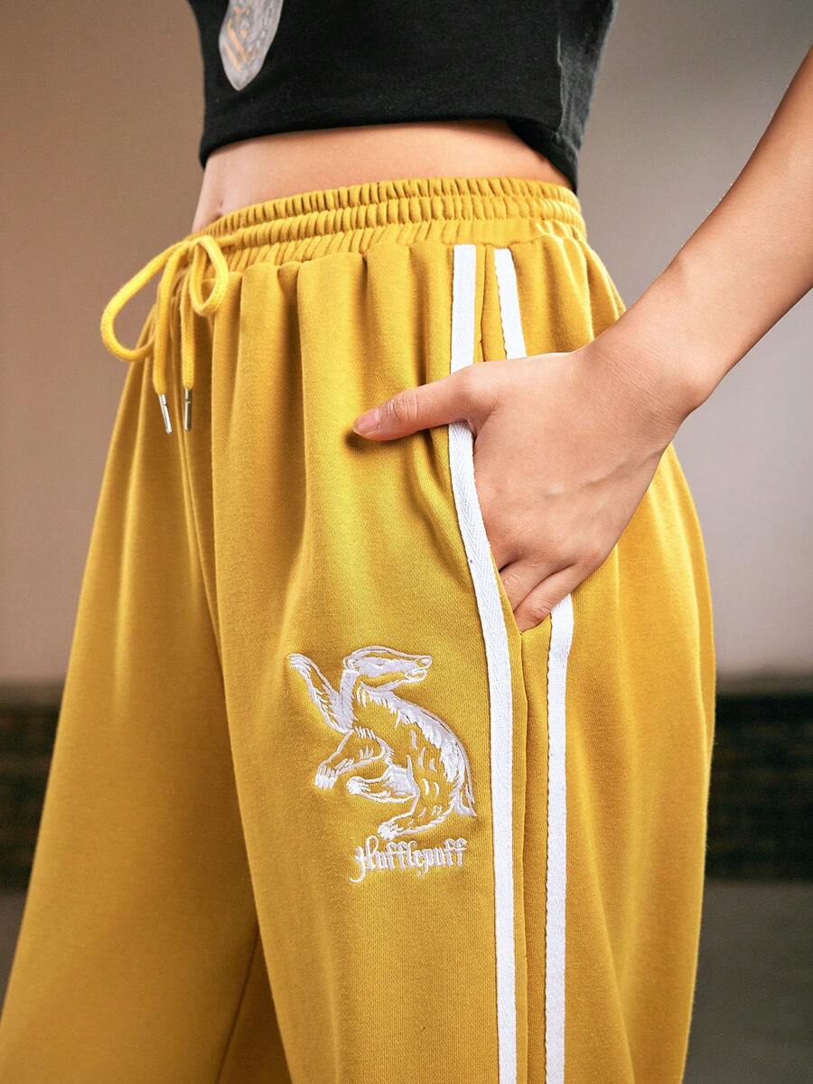 Harry Potter | ROMWE Side Striped Embroidered Drawstring Sports Pants