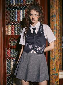 Harry Potter | ROMWE Star Print Button Front Halter Top Without Blouse