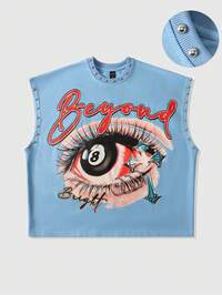 Grunge Punk Men's Summer Casual Street Eyeball Print Loose Fit Tank Top