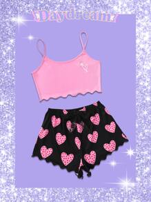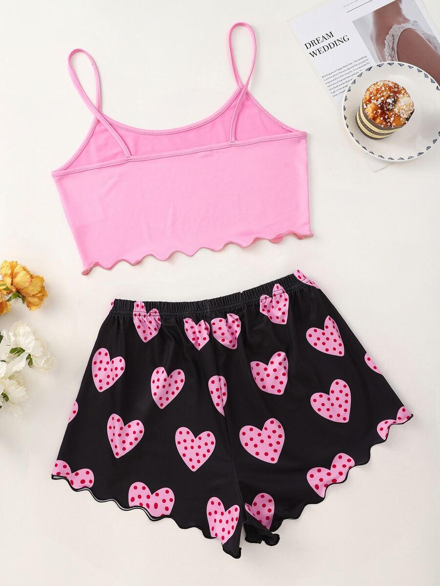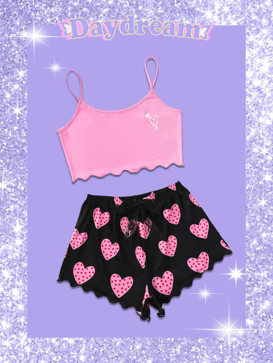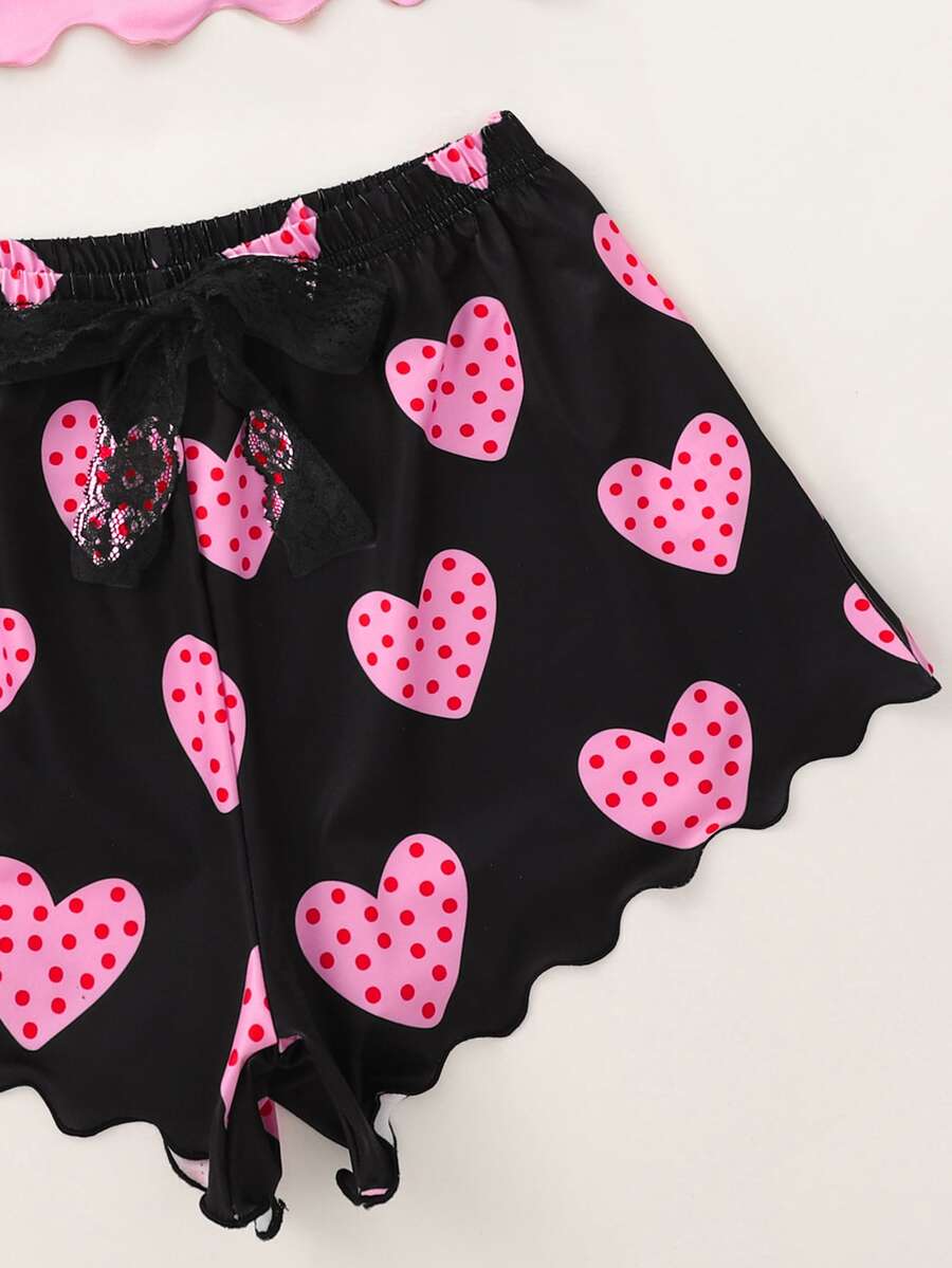 Heart & Crown Graphic Contrast Lace Lettuce Trim Pajama Set