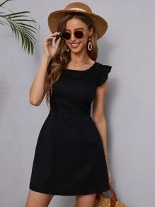 Heart Shape Cut Out Back Ruffle Trim Dress