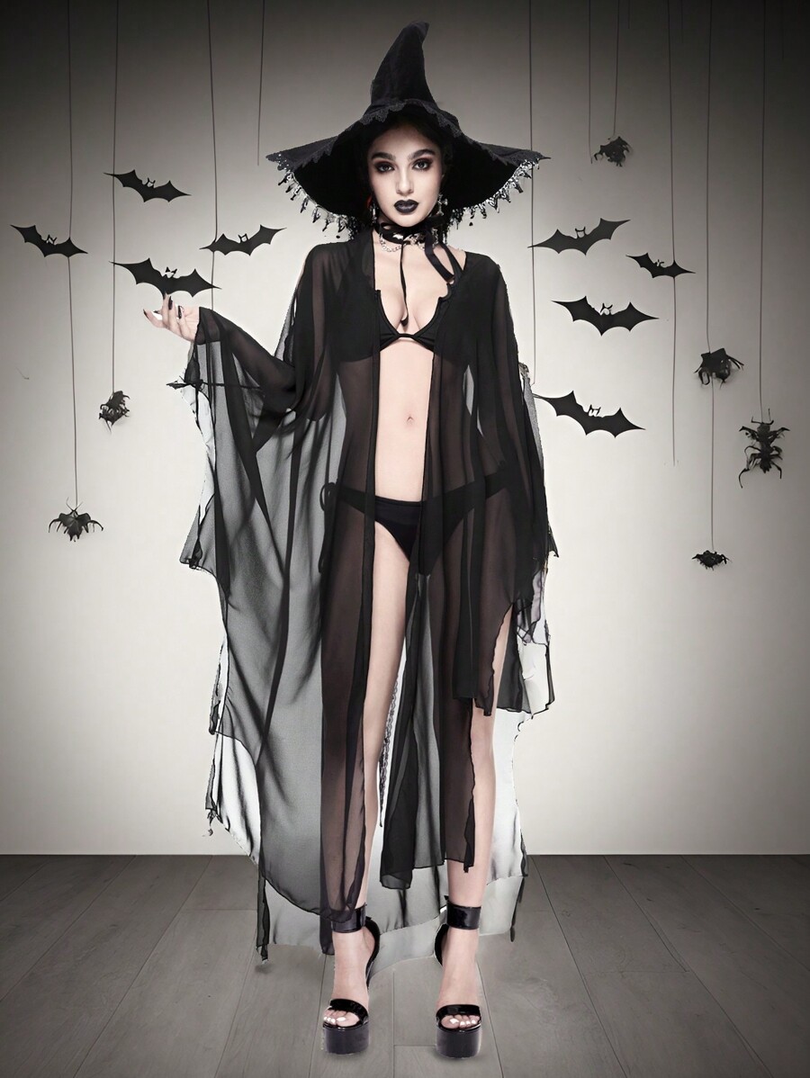 Women Goth Beach Kimono Of Bat Cloak Design, Halloween Clothes, For Summer Vacation