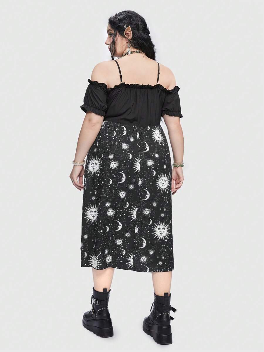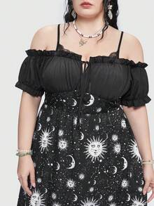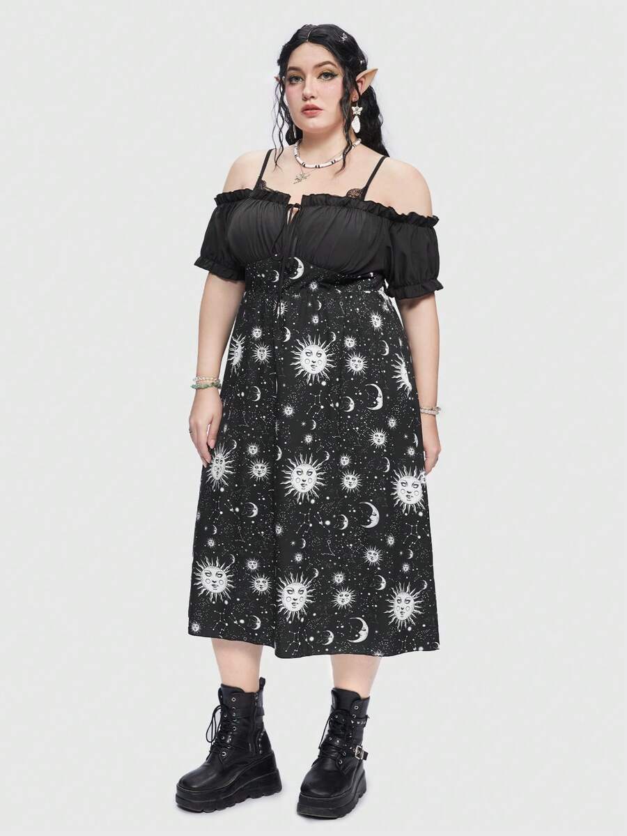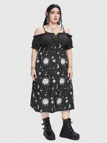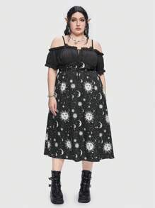 Heymoonly Fairycore Plus Galaxy Print Cold Shoulder Dress