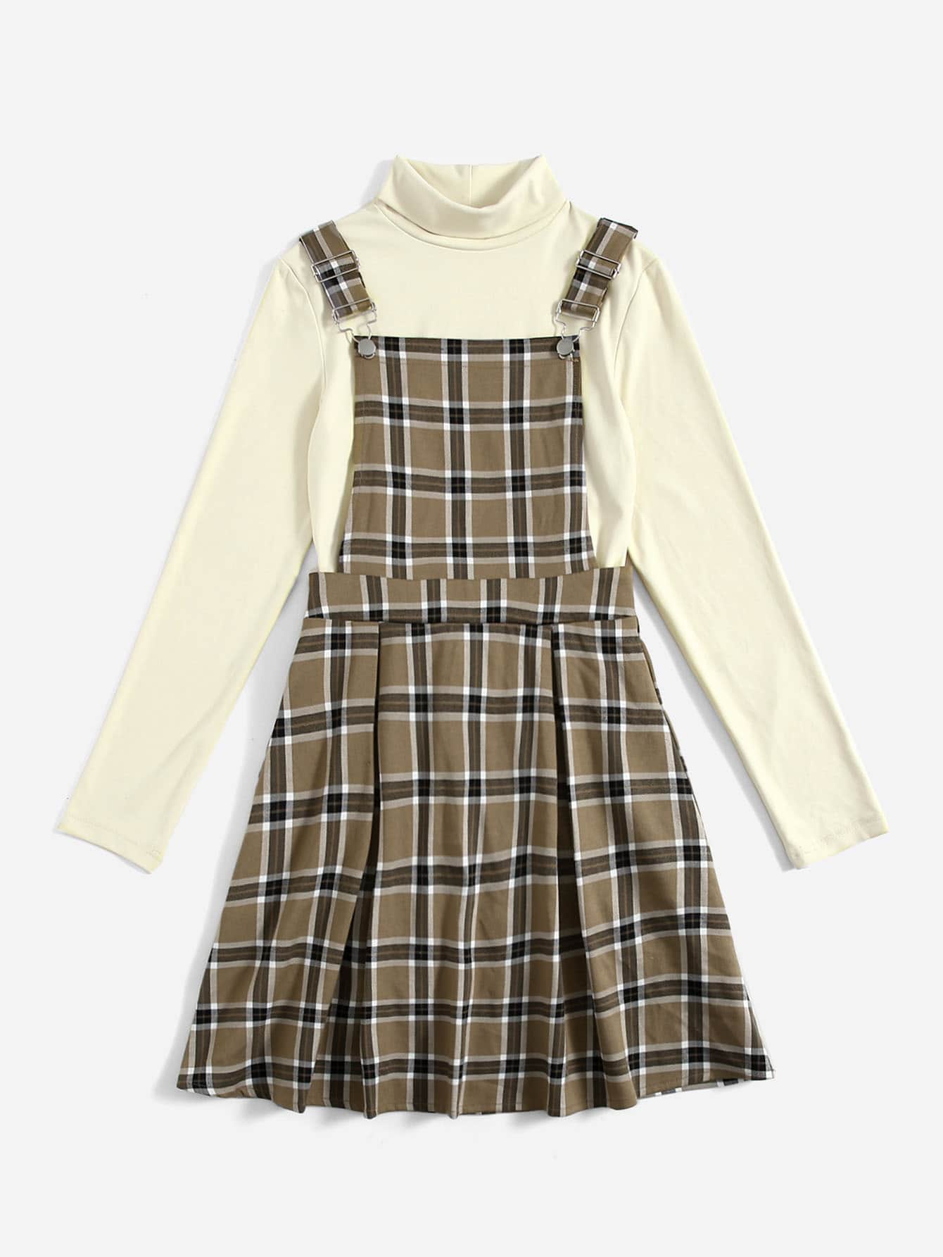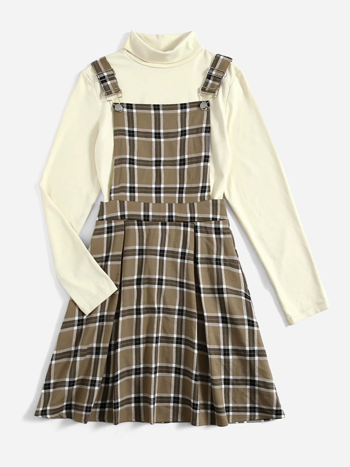High Neck Tee & Plaid Pinafore Dress