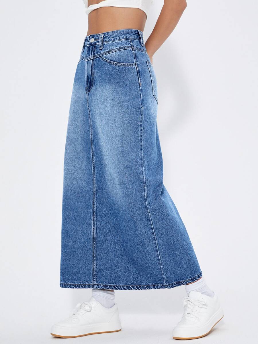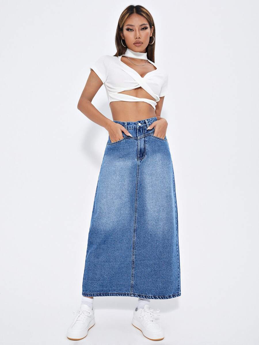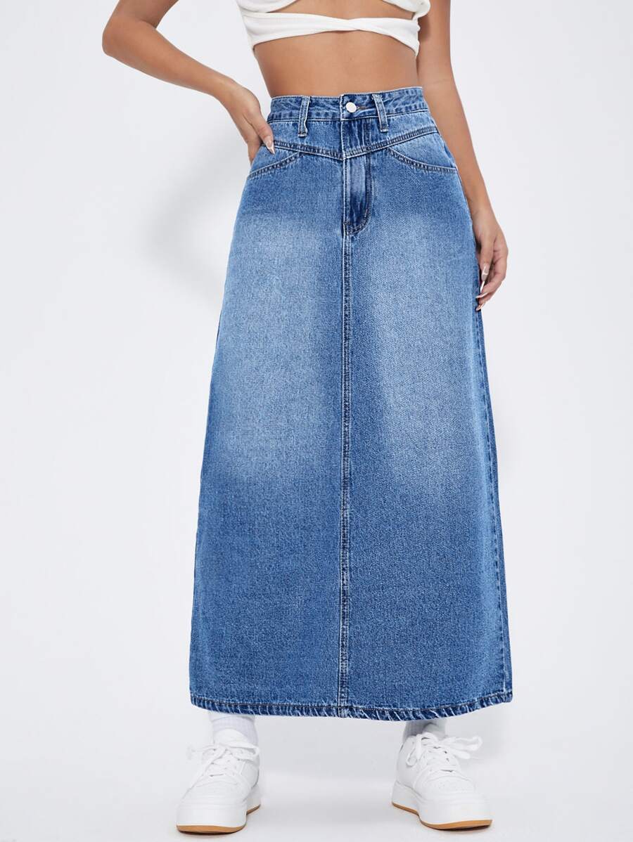 High Waist A-line Denim Skirt