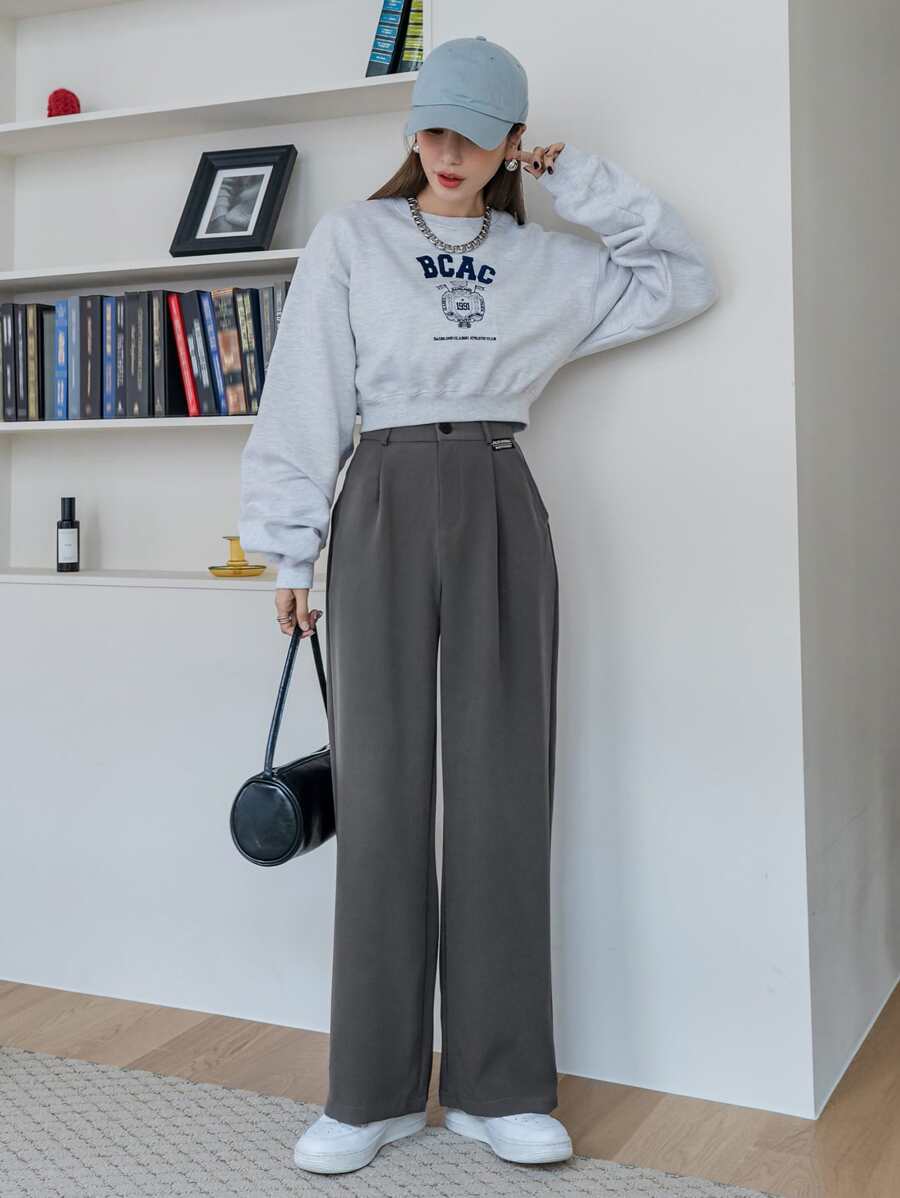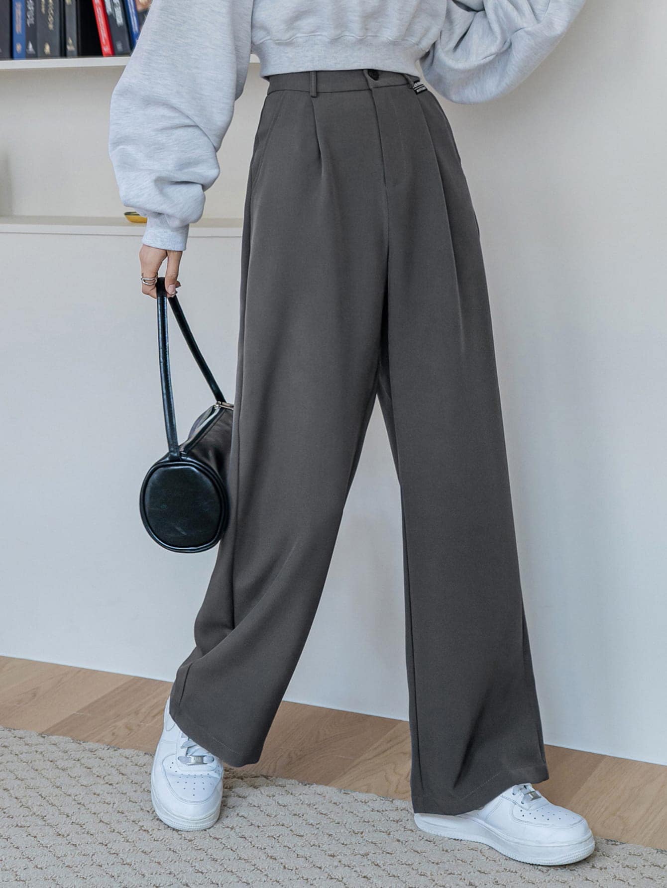 High Waist Plicated Detail Pants,Women Dress Pants,Teacher Pants Fall
