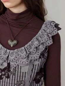 ROMWE Avant Hime Gyaru Cute Mori Kei Lace Patchwork Mini Dress For Women