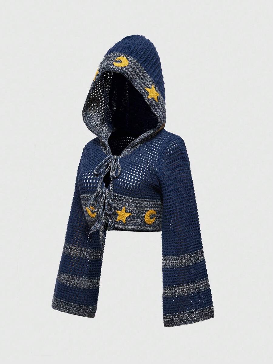 Hippie Bohemian Sun & Moon Print Hooded Cardigan