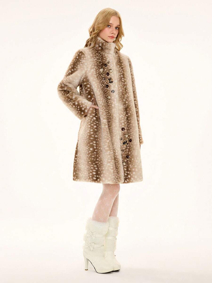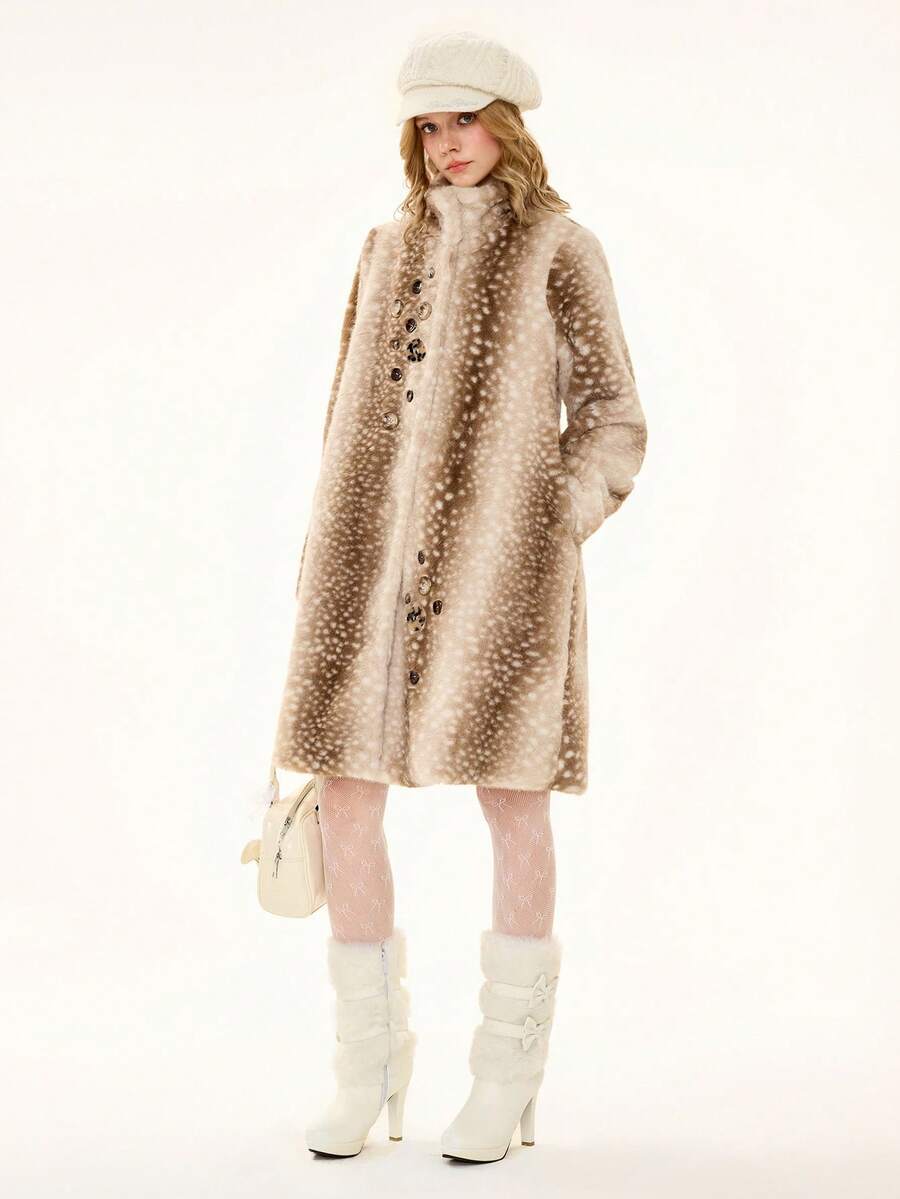 Hippie Cute Deer Fairy Holiday Faux Fur Jacket For Women