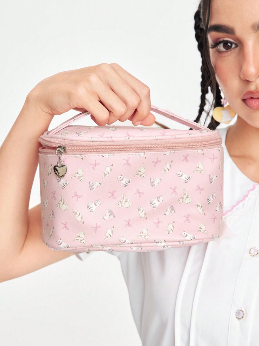 Hippie Fashionable Cute Pink Cat Flipping Top Big Capacity Portable Cosmetic Bag 330365