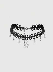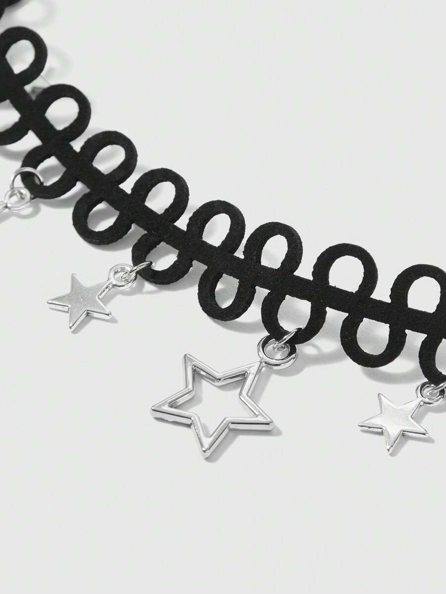 Hippie Fashionable Personalized Wave Pattern Star Pendant Black Choker Necklace For Women