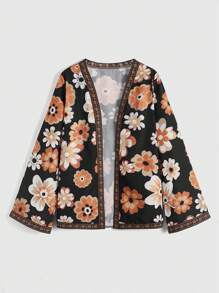 Hippie Style Floral Print Open Front Loose Blouse For Women
