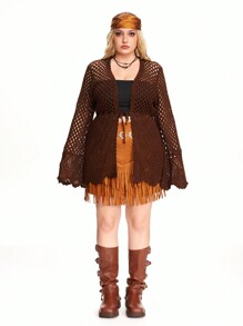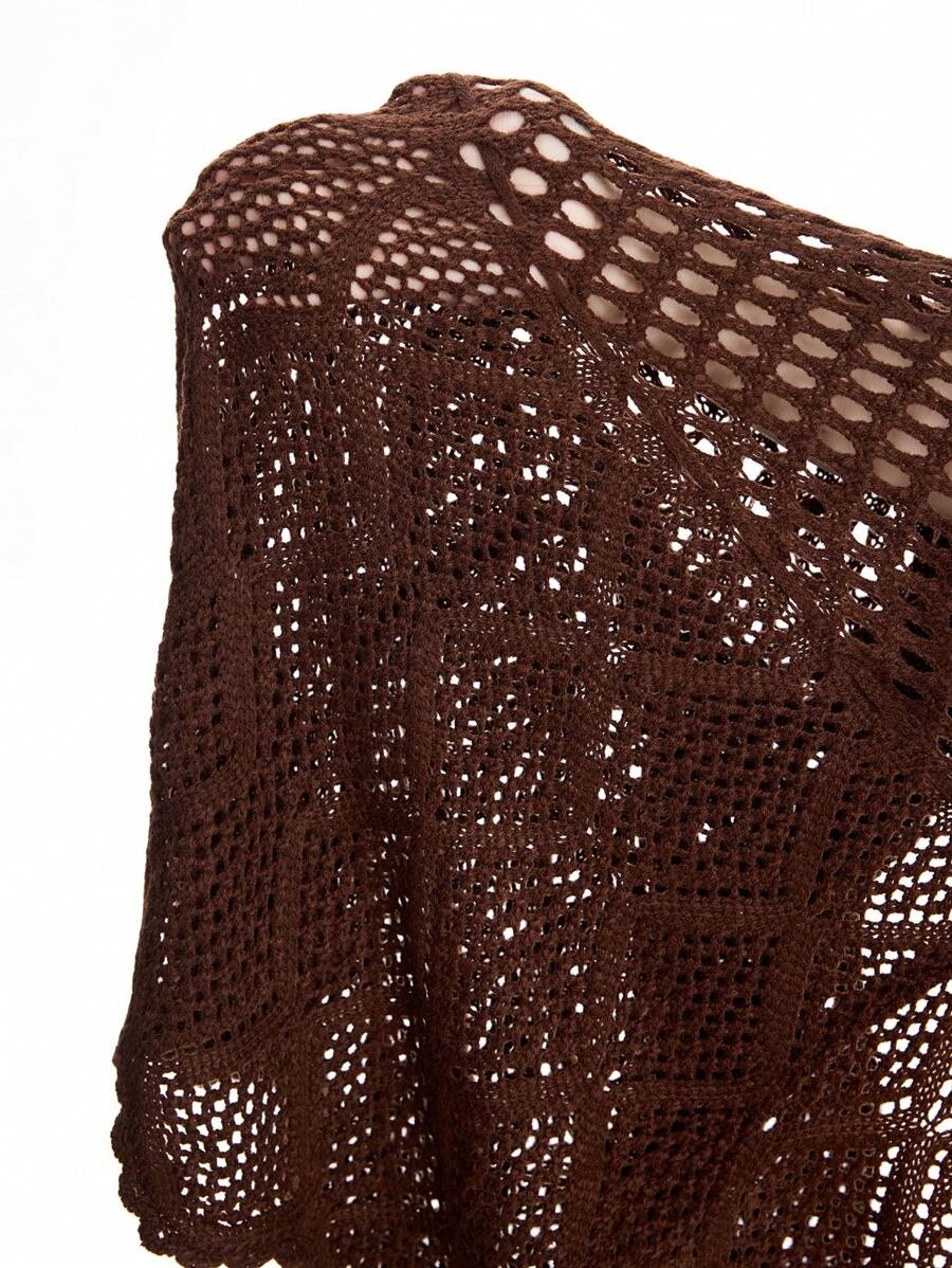 Hippie Plus Size Casual Solid Hollow-Out Knitted Cardigan , Brown Cardigans In Women